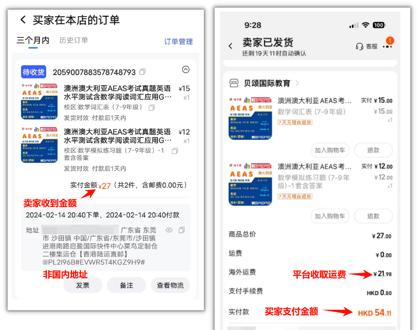 下单。如果已有运费产生,可以使用国内地址